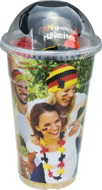 Das nächste große internationale Fußballereignis kommt bestimmt! Mit diesem Häkelset sind Sie dafür perfekt vorbereitet und der Hingucker bei jedem Public Viewing. Wählen Sie selbst, ob Sie aus den beiliegenden 3 Garnknäueln lieber eine sommerliche Häkelmütze oder eine schicke Blumenkette häkeln wollen. Im Set enthalten sind die 2 jeweiligen Anleitungen, Garn in Deutschlandfarben und eine goldene Häkelnadel, sodass Sie sofort loslegen können!