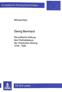 Im politischen Journalismus der Weimarer Republik war Georg Bernhard eine außergewöhnliche und prominente Erscheinung. Mit unvergleichlichem Eifer und Mut trat der deutsch-jüdische Chefredakteur der liberalen Vossischen Zeitung für die erste deutsche Republik ein. Das machte ihn, der schon 1933 fliehen mußte, zu einem herausragenden Vertreter des demokratischen Deutschlands zwischen den Kriegen. In einer kritischen Analyse untersucht die Arbeit zum ersten Mal die politische Haltung Bernhards und spürt deren Motiven nach. Sie ordnet seine Ansichten in die politischen Zusammenhänge ein und erläutert seine zukunftsweisenden Anschauungen. So erscheint Bernhard als Patriot, dessen Vaterlandsliebe sein Wirken bestimmte, als Demokrat, der sich den rechten Staatsgegnern energisch widersetzte, und als Verständigungspolitiker, der als erster im Reich die Wichtigkeit des deutsch-französischen Ausgleichs erfaßte.