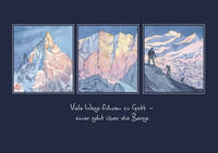 Das Billet zeigt Stechers Aquarelle "Cimon della Pala", "Der Heiligkreuzkofel" und "Aufstieg am Morgen".