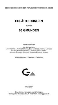 Die Erläuterungen zur Geologischen Karte von Blatt 66 Gmunden (1:50.000) beinhalten neben einer umfangreichen Darstellung der Legendeneinträge auch Kapitel über die Erforschungsgeschichte, mineralische Rohstoffe, Höhlen, Bohrungen, Naturdenkmale und Hydrogeologie.