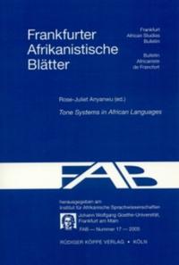 INHALT Rose-Juliet Anyanwu: Tones in Jukunoid languages Rose-Juliet Anyanwu / Khalil Alio: The functions of the morphosyntactic tone in Bidiya Rose-Juliet Anyanwu / Abdourahmane Diallo: Rhythmic units and stress / word accent mobility in Fula Rose-Juliet Anyanwu / Bernhard Köhler: A survey of Northern Khoisan tonology Herrmann Jungraithmayr: Tonal cases in Mushere Antje Meißner: Some remarks on nominal tone in Maa David Roberts: The variable status of nasals as tone bearing units in Kabiyè Eno-Abasi Urua: The tones of Iko