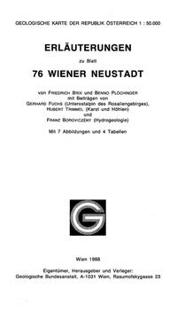 Die Erläuterungen zur Geologischen Karte von Blatt 76 Wiener Neustadt (1:50.000) beinhalten neben einer umfangreichen Darstellung der Legendeneinträge auch Kapitel über die Erforschungsgeschichte, mineralische Rohstoffe, Bohrungen, Höhlen und Hydrogeologie und Geophysik sowie einen Beitrag mit Exkursionsvorschläge.