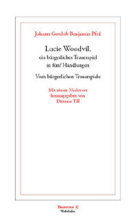 Als ›bürgerliches Trauerspiel der Abschreckung‹ ist Pfeils Lucie Woodvil aus dem Jahr 1756 in den letzten Jahren von der Forschung als Meilenstein des Genres gewürdigt worden. Mit der Abhandlung 'Vom bürgerlichen Trauerspiel' legte Pfeil bereits ein Jahr vorher die ersten theoretischen Überlegungen zum neuen Genre vor.  Beide Texte werden hier nach Jahrzehnten wieder zugänglich gemacht, erstmals in Orthographie und Interpunkion unverändert.