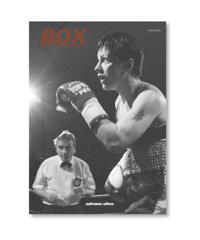 Dynamik, Härte, Drama, Nostalgie, Schweiß, Geschichten von Helden und Niederlagen sowie ein Hauch von Verruchtheit – die Welt des Boxens lockt viele Fotografen, Literaten und die vermeintlich bessere Gesellschaft. Längst haben sich auch die Frauen in dieser Männerdomäne behauptet und erweitern das Boxen durch ihre eigene, feminine Note. Die Fotografin Anja Schori boxt selber und nimmt an Wettkämpfen teil. Da lag es nahe, sich dem eigenen Sport mit der Kamera zu nähern. Zunächst wollte sie männliche Trainer fotografieren, doch „mit den Männern klappt es nicht so gut“. Also richtete sie die Kamera auf ihre Geschlechtsgenossinnen und Trainingspartnerinnen. Selbstbewusst betont sie in ihren Fotografien das Weibliche, mischt in ihrem Magazin „Box“ dokumentarische Boxszenen mit modischen Inszenierungen, Realität mit Fiktion, Schwarzweiß mit Farbe, Schärfe mit Unschärfe. Es geht um das Boxen, ja, aber das blaue Auge kann uns hier auch mal in Form einer Augenklappe begegnen, getragen von einer attraktiven Frau mit brünettem Haar.