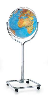 DP 50 ERIKA, Standleuchtglobus physisch/politisch, Verchromtes Metallgestell, Vollmeridian. Fahrbar auf 4 Rollen, Gesamthöhe 1,21 m. Geeignet für Schulen.