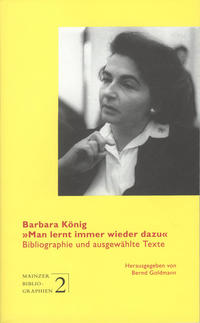 Als Band 2 der ›Mainzer Bibliographien‹ erschien ›Barbara König. »Man lernt immer wieder dazu«. Bibliographie und ausgewählte Texte‹, herausgegeben von Bernd Goldmann.