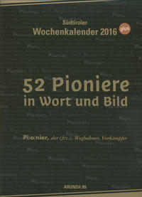 Pioniere der modernen Architektur: Arunda Sektkellerei, 25 Jahre Frisches vom Bauernhof, Josef Beikircher, Beikirchers elektromechanische Werkstätte, Don Giancarlo Bertagnolli, Valentin Braitenberg, Sehganglien der Stubenfliege, Theodor Christomannos, Hans Costabiei, Flaas, Paul Flora, Fuchs Manfred, Bernd Gänsbacher, Bischof Josef Gargitter, Theaterschule Bruneck-Klaus Gasperi, Pioniere der Gastronomie, Anna Kirste Perwanger, Emma Hellenstainer, Hans Debeljak und Andreas Hellrigl, Giancarlo Godio, Claus Gatterer, Galleria GOETHE Galerie, Monika Hauser, Oswald Jaeggi, Jesuheim, Barmherzige Schwestern, Norbert Conrad Kaser, „Librika“-Universitätsbibliothek Bruneck, Johann Kravogl, Karl Kuppelwieser, Alois Lageder, Ansitz Löwengang – Alois Lageder, Blasius Marsoner, Reinhold Messner, Peter Mitterhofer, Museum Galerie Bozen, Maria Niederstätter, Das Leere und das Volle, Hermann Oberhofer, Luis Oberrauch, Obst- und Weinpioniere, Josef Perger, Herbert Pixner, Karl Plattner, Burkhard Pohl, Konzert im Marmorbruch, Politische Pioniere (Benedikter, Dietl, Magnago), Puni Whisky, Ing. Dieter Rudolf, Prof. Ina Schenk, Michael Seeber – Leitner AG, LEITNER ropeways, Hubert Stuppner, Jakob Tappeiner, Luis Trenker, Umweltschutzgruppe Vinschgau, Max Valier, Ulrich Veith (Pestizidfreie Gemeinde), Der Beregnungsphilosoph Ing. Volante, Jochwaal und Holzkandl, Dr. Friedl Volgger, Wasserballast Seilbahn, Wasserbetriebene Fernkraft, Weißes Kreuz (Landesrettungsdienst), Die Winterschule Ulten, Ing. Luis Zuegg.
